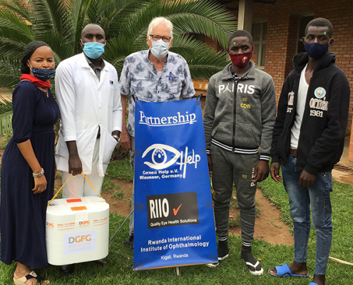 Bafoussam, Kamerun / Hannover, Deutschland: Neun Kameruner:innen erhalten eine neue Augenhornhaut aus dem Netzwerk der gemeinnützigen Deutschen Gesellschaft für Gewebetransplantation (DGFG) im Rahmen einer humanitären Mission. Ein interdisziplinäres Team aus Ärzten und Technikern aus Greifswald reiste hierfür nach Bafoussam im Westen des Landes. Die DGFG begleitete die Reise videodokumentarisch.