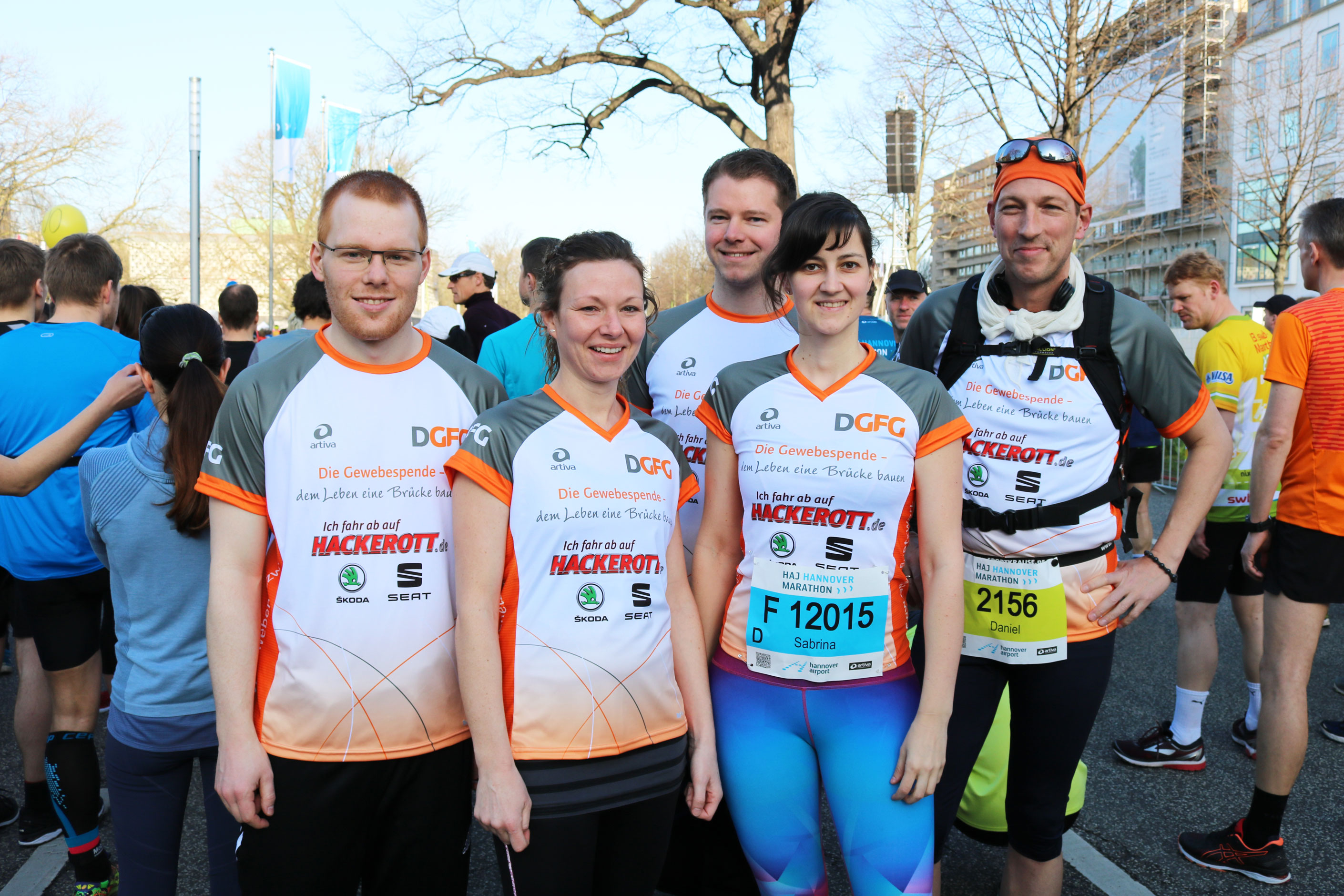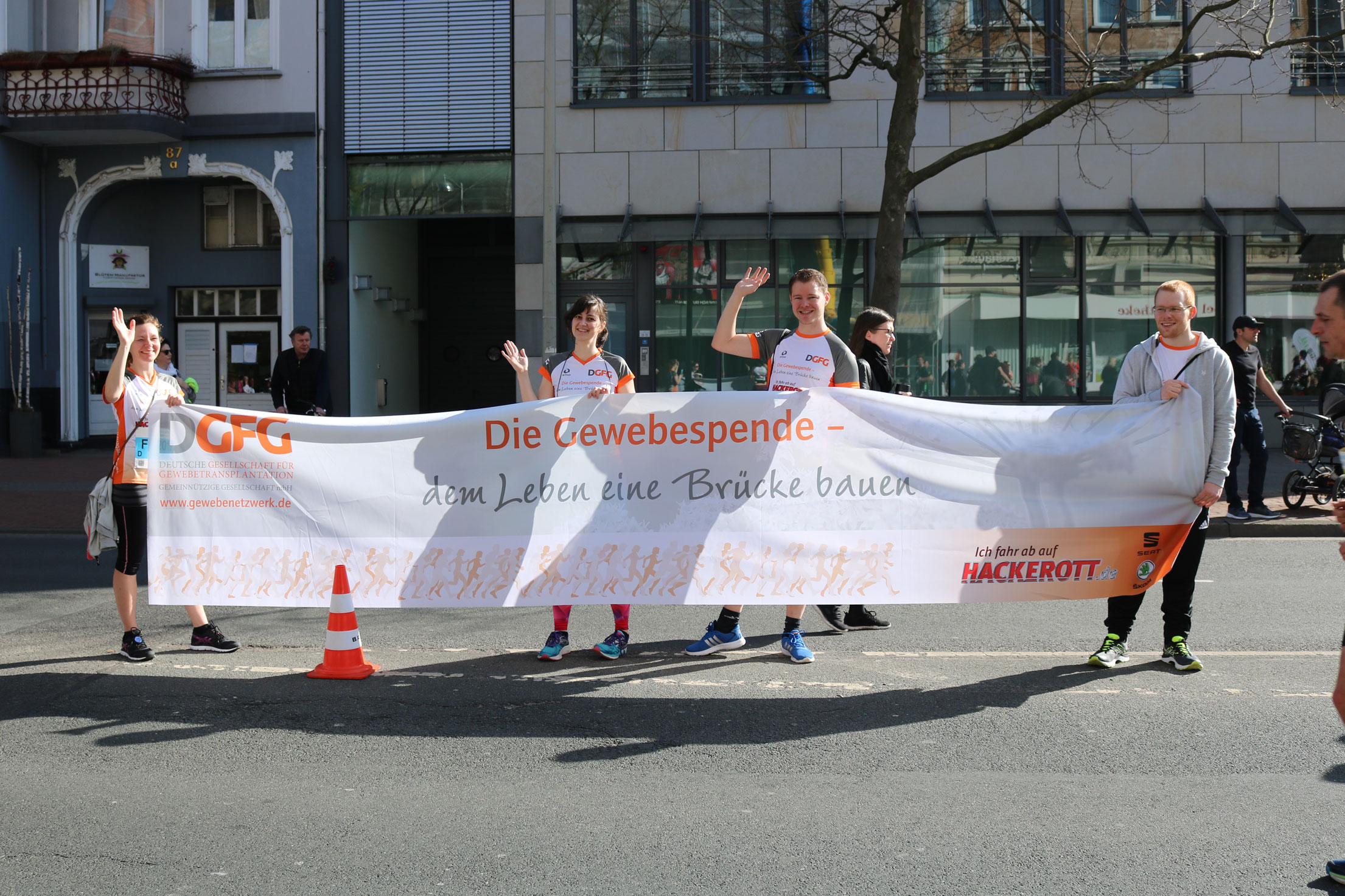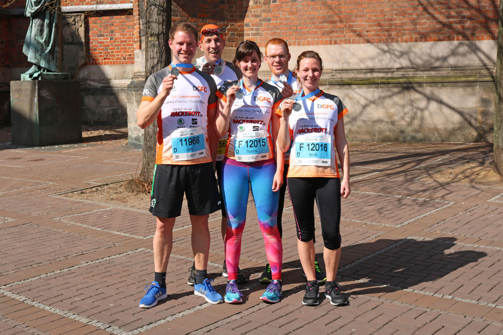 DGFG-Mitarbeiter liefen bei bestem Frühlingswetter am 8. April 2018 beim Hannover Marathon für die Gewebespende.