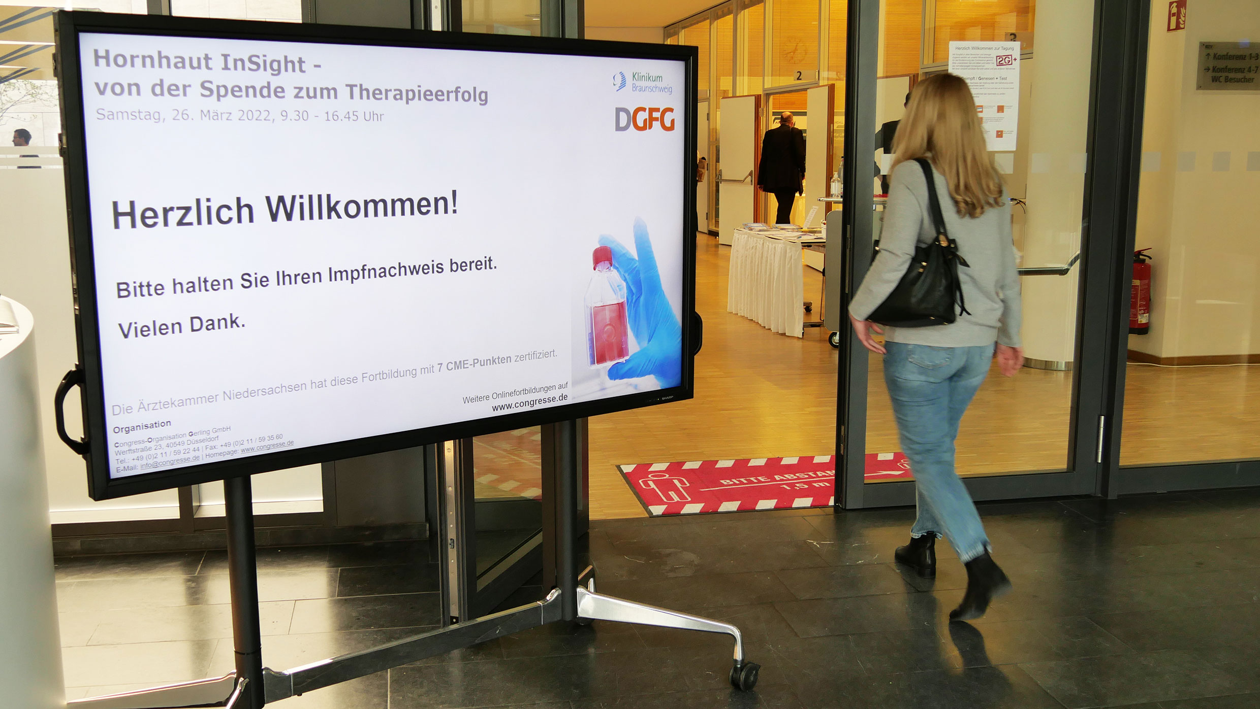 Braunschweig, 26.03.2022 – Der neue Chefarzt der Augenklinik am Städtischen Klinikum Braunschweig Dr. med. Erik Chankiewitz begrüßte am Samstag gemeinsam mit der Deutschen Gesellschaft für Gewebetransplantation (DGFG) rund 50 Augenärzt*innen zur Fortbildung „Hornhaut InSight – von der Spende zum Therapieerfolg“ im BZV Medienhaus in Braunschweig. Über 150 Teilnehmende konnten die Fortbildung zusätzlich online mitverfolgen. Das Thema: Innovative OP-Methoden und aktuelle Forschungsergebnisse zur Hornhauttransplantation – eine für viele Patient*innen oftmals letzte und einzige Therapieoption, um die Klarheit der Hornhaut und damit die Sehkraft zu erhalten. Neben Transplantationsverfahren mit Spenderhornhäuten diskutierten die Expert*innen auch zu dem Einsatz von Zelltherapien und der Weiterentwicklung von Gewebetransplantaten. Denn auch die Hornhautmedizin ist stets mit einem Mangel an verfügbarem Gewebe konfrontiert, weshalb Forscher an der Weiterentwicklung der Transplantate mit Hochdruck arbeiten.