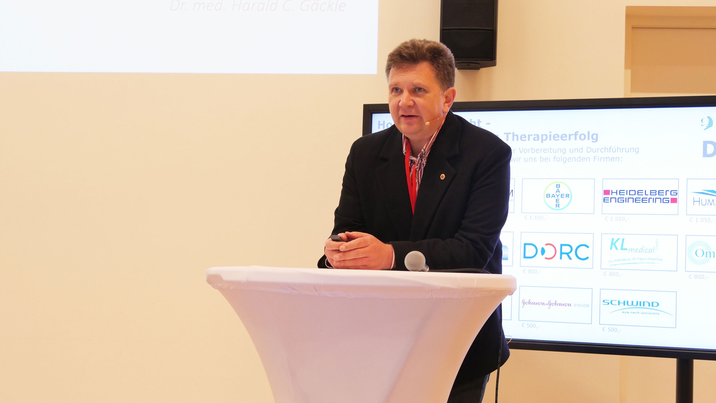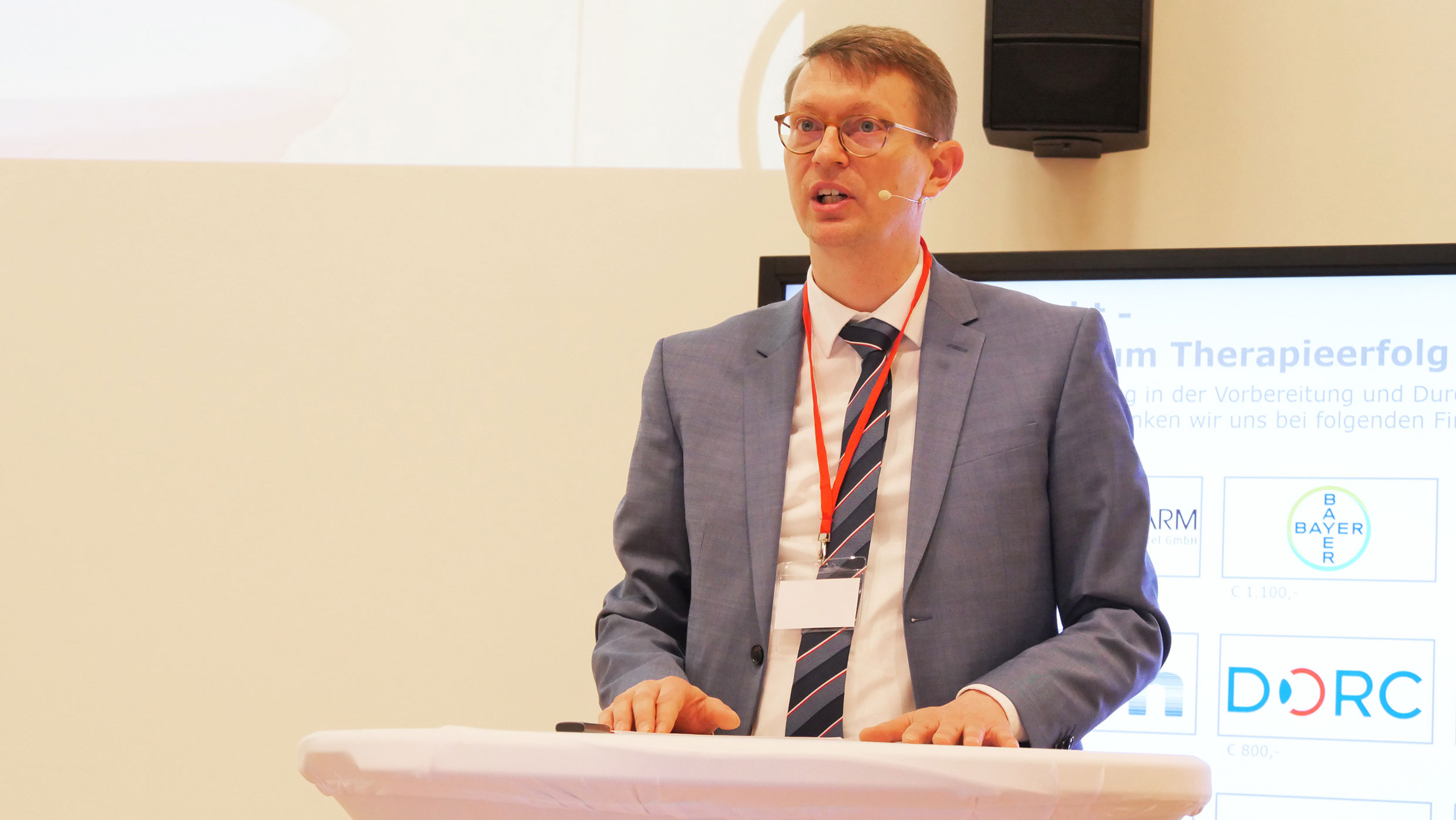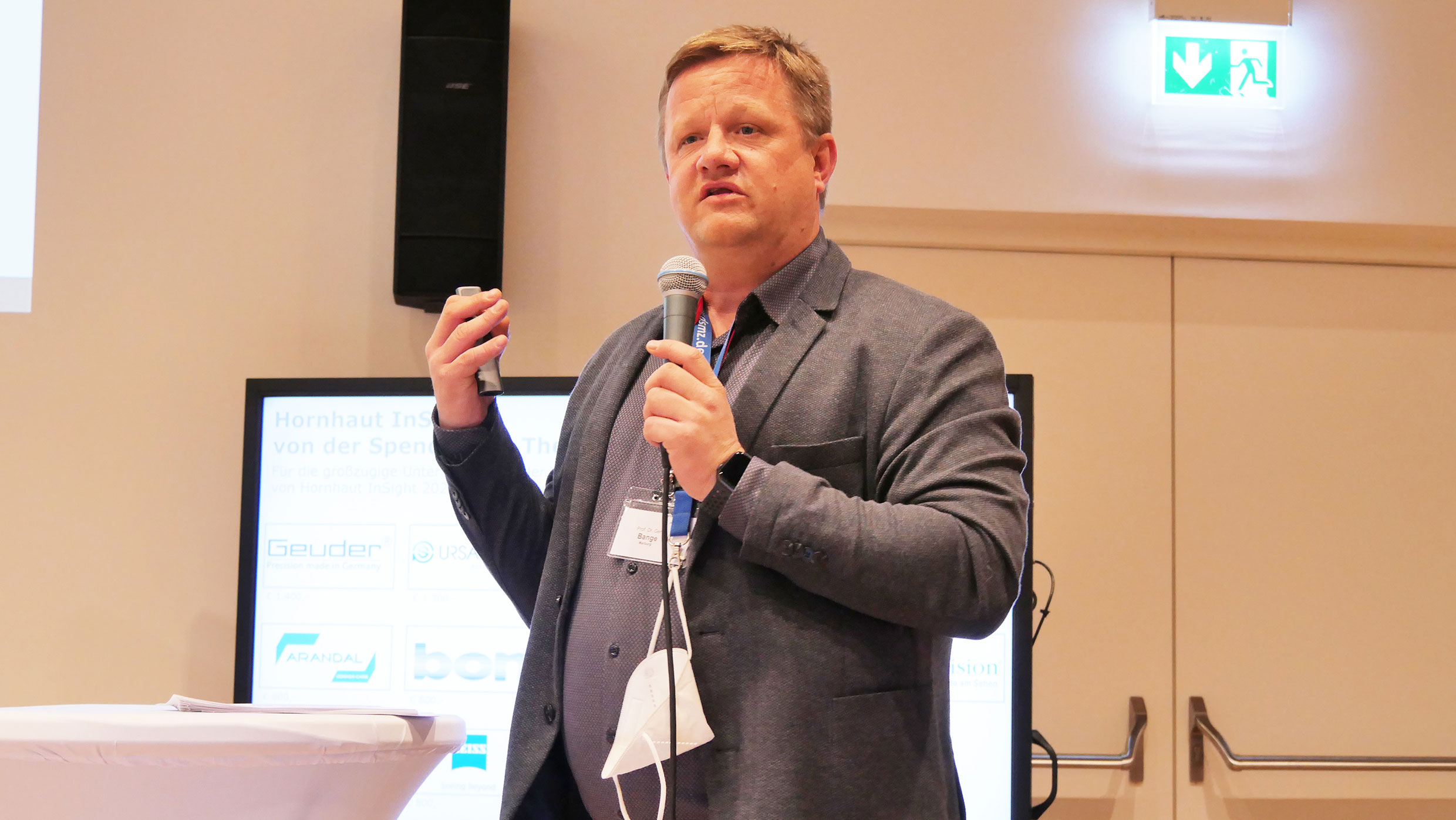 Im Anschluss stellte Professor Arne Viestenz, Leiter der Augenklinik am Universitätsklinikum Halle, nach Gedenken an den verstorbenen Hornhautspezialisten Prof. Gottfried O. Naumann komplexe Fälle und Behandlungswege schwerer Traumata am Auge vor. Hierbei appellierte Viestenz an die Teilnehmenden insbesondere bei Kindern sehr schnell zu handeln und zu operieren. Denn auch die Wundheilung im Auge verläuft bei Kindern im Vergleich zur Wundheilung bei Erwachsenen extrem schnell. Die Folge: Endothelzellen könnten sich im Auge dort ansiedeln, wo sie mehr schaden als nutzen und mitunter die Sehfähigkeit akut gefährden.