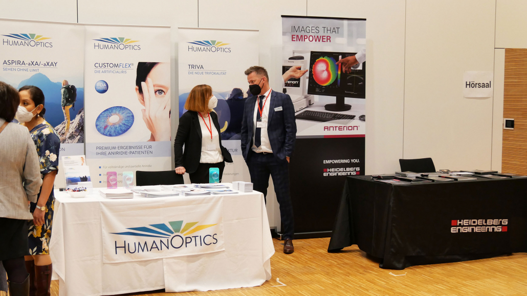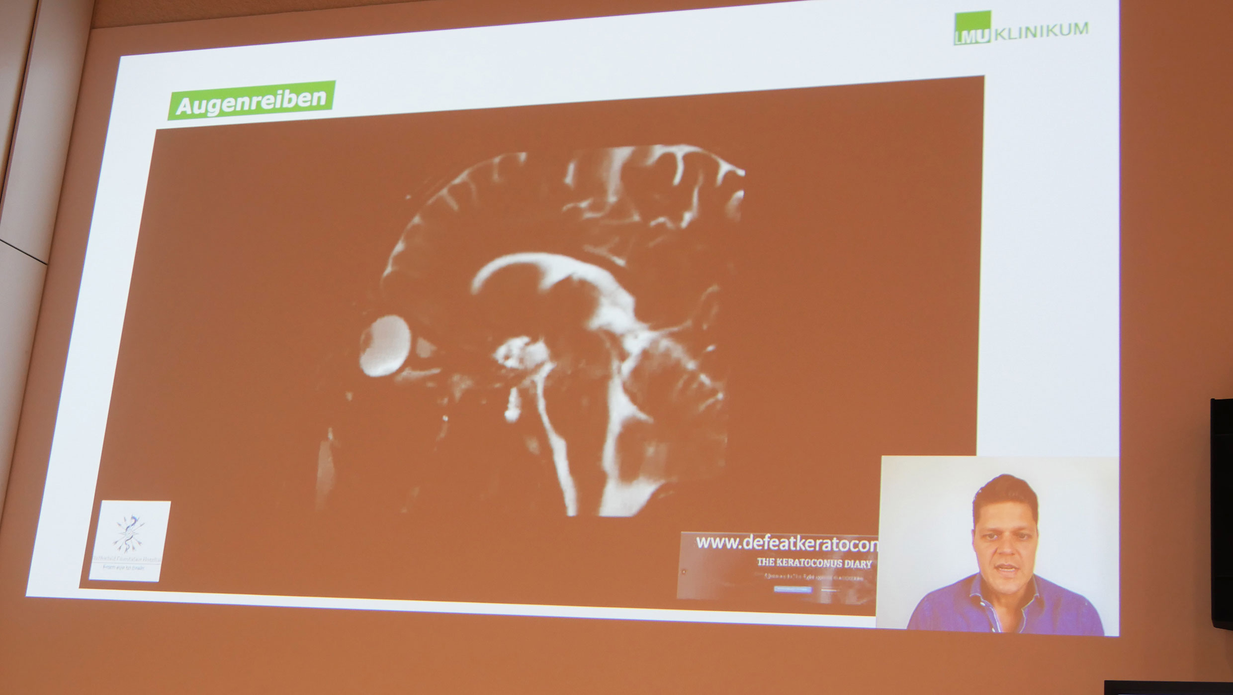 Doktor Martin Dirisamer von der Augenklinik des LMU-Klinikums München wurde live am Samstag für seinen Vortrag zur Bowmanlayertransplantation dazugeschaltet: Diese OP-Methode kann bei Keratokonuspatient*innen zum Einsatz kommen. Die Bowman-Membran ist die stärkste Schicht der Hornhaut. Sie wird aus der Spenderhornhaut in einer Gewebebank herauspräpariert und nahtlos in das Patientenauge im Hornhautstroma eingesetzt. Diese Transplantationsmethode soll ebenfalls eine perforierende Keratoplastik verhindern oder zumindest hinauszögern, da die Bowman-Membran der Hornhaut wieder ausreichend Festigkeit verleiht, was eine weitere Auswölbung verhindert.