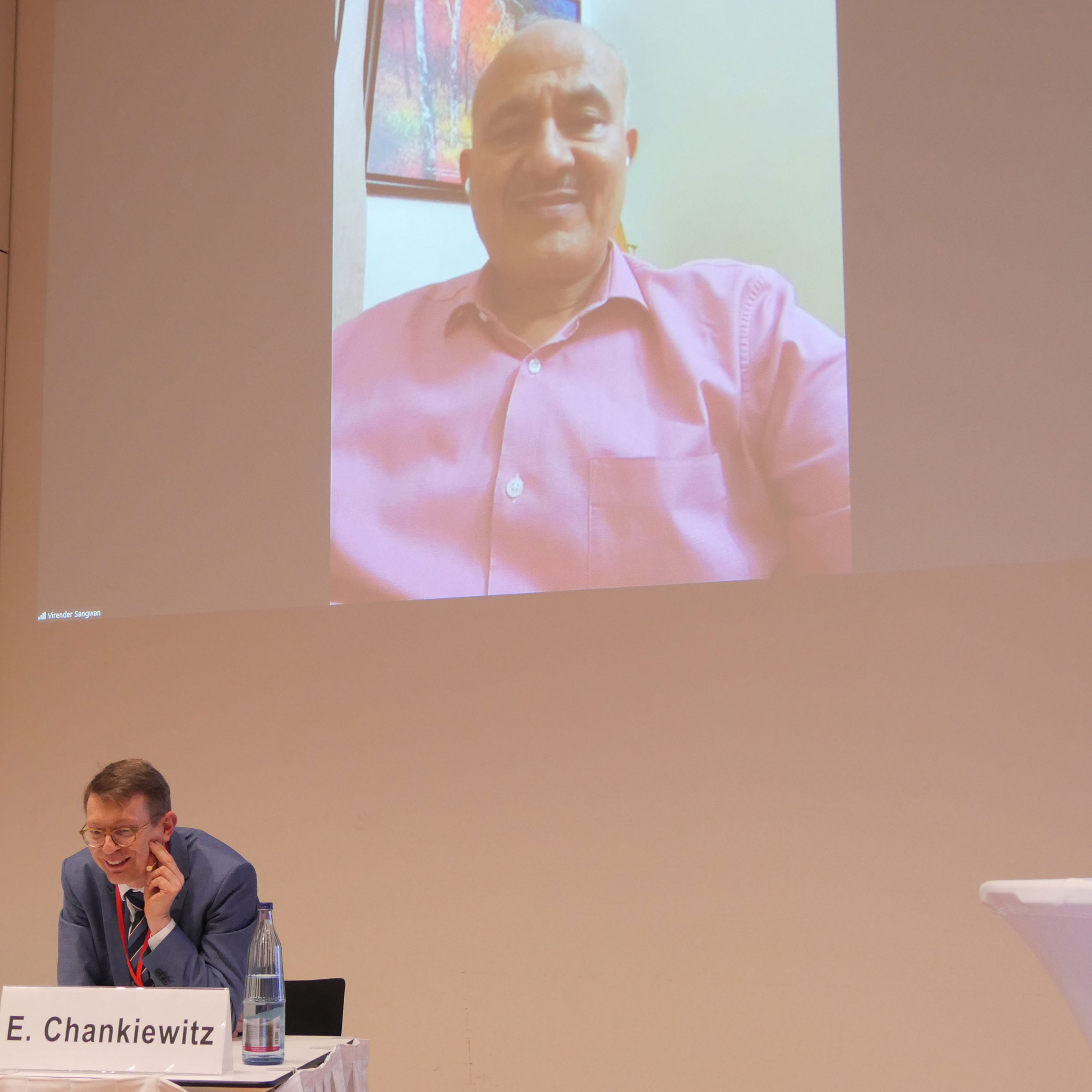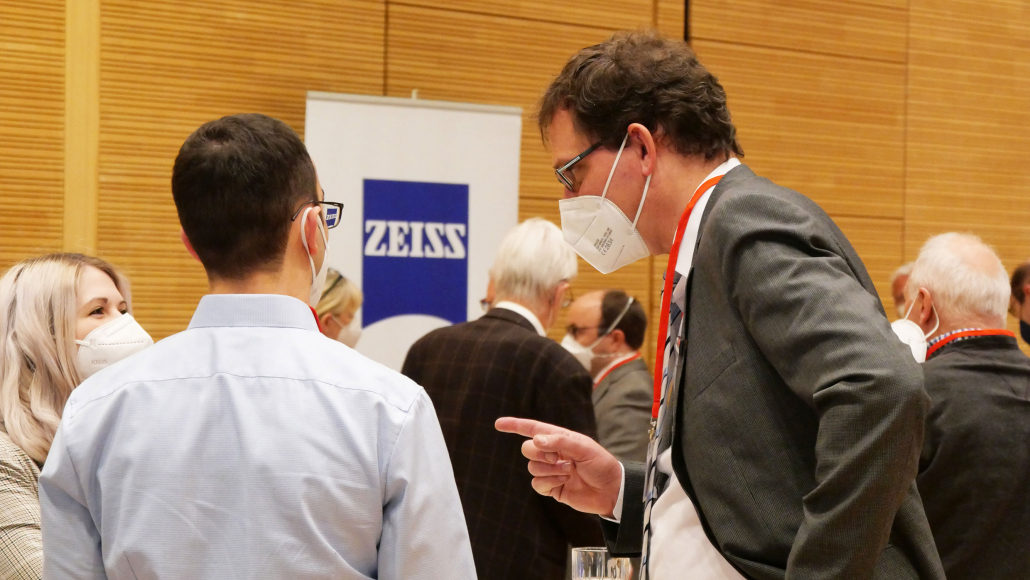 Ebenfalls live dazu geschaltet für seinen Vortrag zum Thema der Limbusstammzelltransplantation war Doktor Virender Sangwan des Dr. Shroff’s Charity Eye Hospital aus Dheli, Indien. Über die sogenannte SLET Methode konnten bereits sehr gute Erfolge in der Behandlung limbaler Stammzellinsuffizienz erzielt werden: Verletzungen führen dazu, dass die Limbusstammzellen vom äußeren Hornhautrand ihrer Funktion, Epithel für die oberste Hornhautschicht zu bilden, nicht mehr nachkommen können. Die Folge: Die Hornhaut trübt ein. Augenärzt*innen entfernen dann die erkrankte Epithelschicht und setzen am Rand neue Limbusstammzellen ein, die die Regeneration der Epithelzellen wieder aufnehmen können. Die Limbusstammzellen stammen dabei vom gesunden, zweiten Auge des Patienten, werden in einer Gewebebank vermehrt und schließlich in das erkrankte Auge übertragen. Glückt diese Zelltransplantation ist keine Hornhauttransplantation mehr nötig.