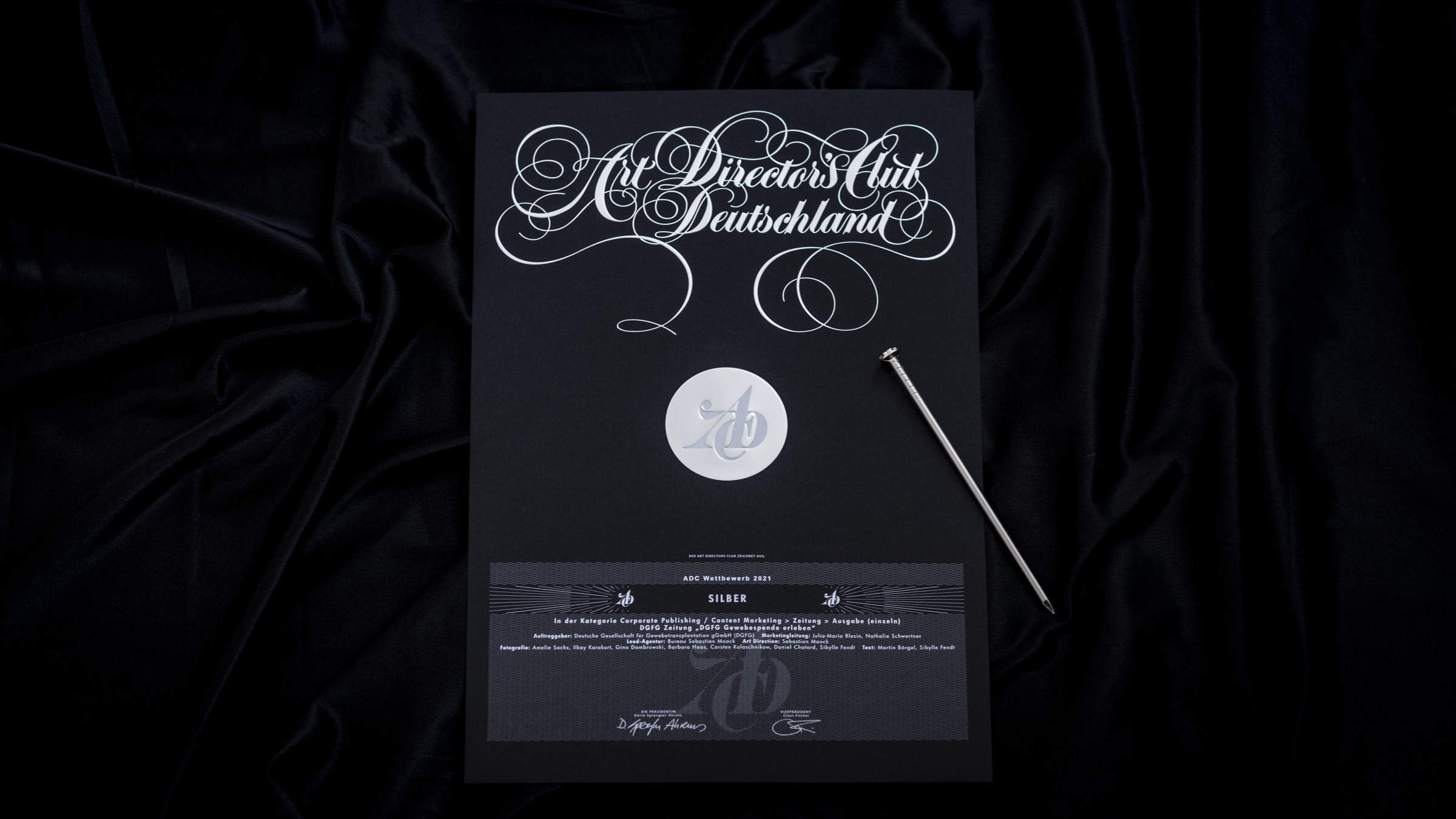 Hannover, 19.08.2021 – Das gemeinsame Projekt „Gewebespende erleben“ von Fotostudierenden der Hochschule Hannover und der Deutschen Gesellschaft für Gewebetransplantation (DGFG) wurde mit dem Silbernen Nagel des Art Directors Club (ADC), dem wichtigsten deutschen Kreativwettbewerb, in der Kategorie „Corporate Publishing > Zeitung > Ausgabe (einzeln)“ ausgezeichnet. Die grafische Umsetzung der Zeitung zur Fotografie-Ausstellung erfolgte durch den Hannoveraner Grafikdesigner Sebastian Moock.