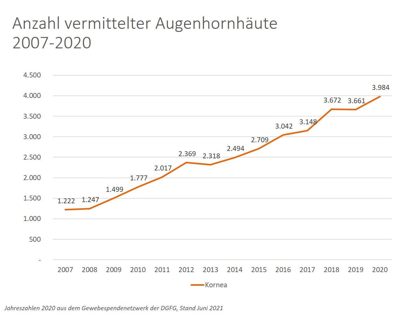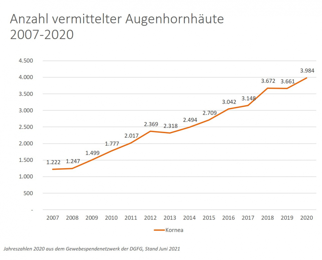 [1] Ärzteblatt.de: Mehr als 9.000 Augenhornhauttransplantationen pro Jahr in Deutschland. Stand 07.06.2021 Zugriff unter https://www.aerzteblatt.de/nachrichten/124448/Mehr-als-9-000-Augenhornhauttransplantationen-pro-Jahr-in-Deutschland