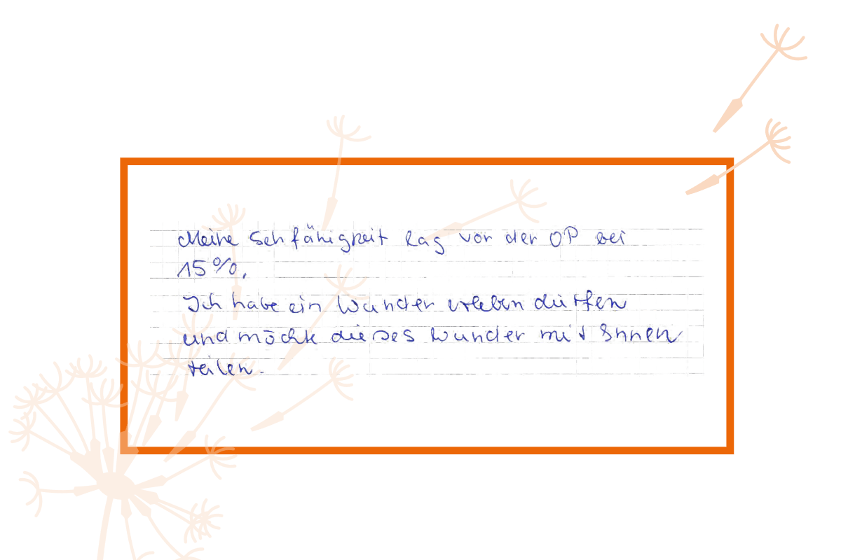 Meine Sehfähigkeit lag vor den Behandlungen bei 15 Prozent.