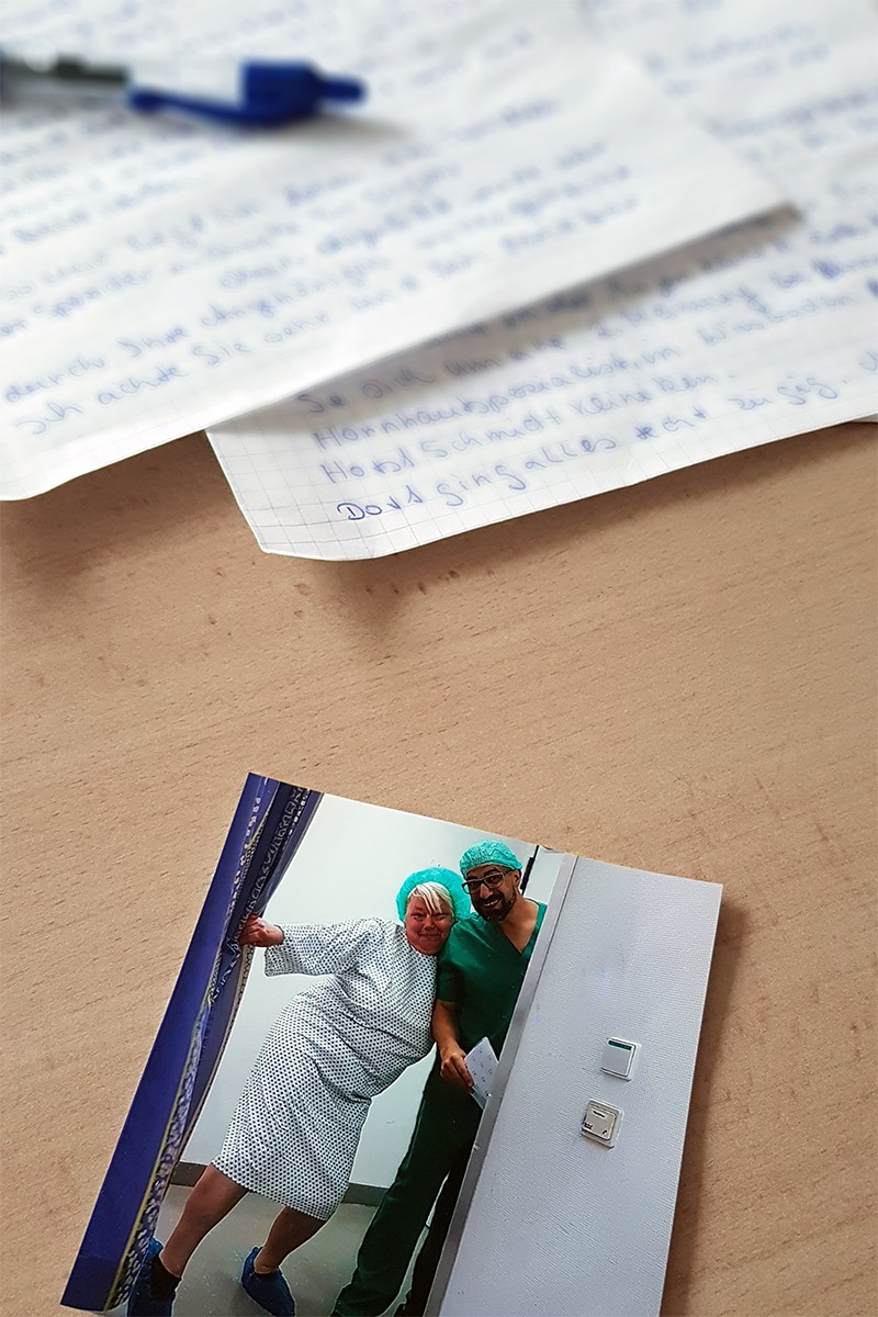 Meine große Schwester Marita wohnt in Mainz und arbeitet in der Augenklinik. Sie vermittelte mich an Dr. Jochen Wahl, Hornhautspezialist an den Helios Dr. Horst Schmidt Kliniken in Wiesbaden. Dort ging alles recht zügig. Noch im März 2018 bekam ich meine erste Hornhauttransplantation am linken Auge. Leider verlief diese nicht gut. Darauf hin wurde mir bereits Ende Mai 2018 ein zweites Transplantat bereitgestellt. Das hat sofort geklappt. Ich erholte mich und konnte sechs Wochen später wieder arbeiten.