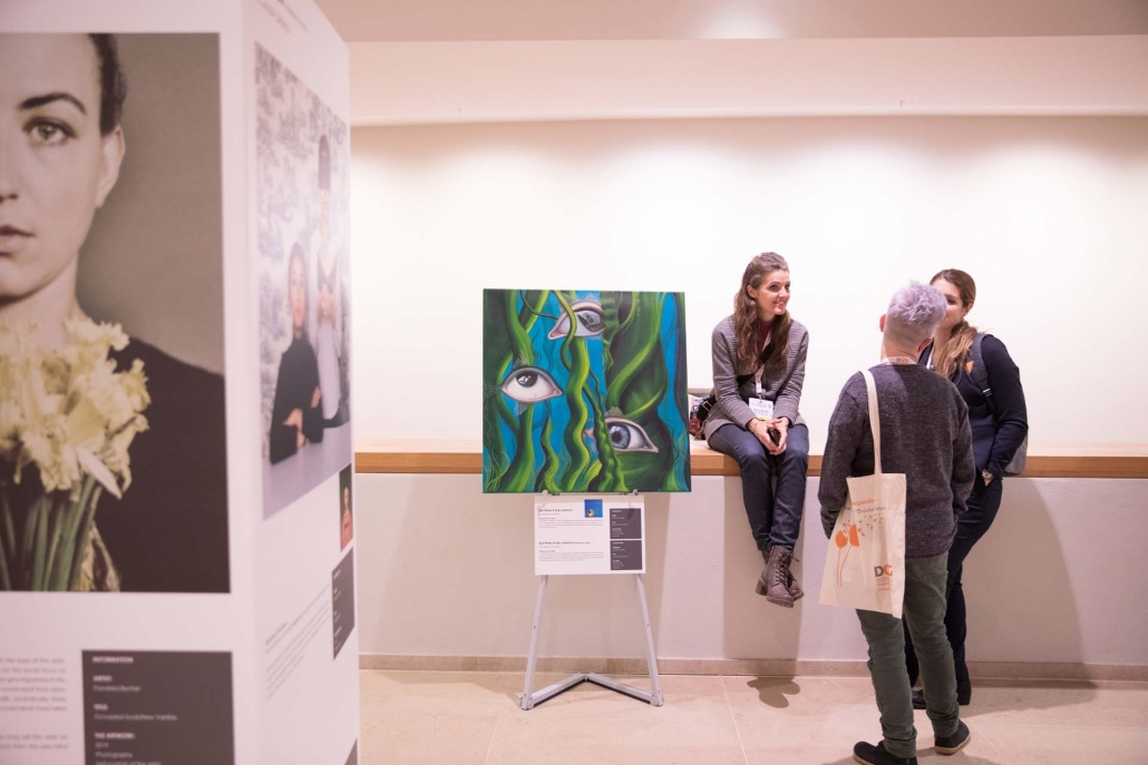 A highlight on the programme of this first evening was the exhibition of the 18 submitted artworks for the Photo & Art Contest: For the first time, EEBA together with the DGFG organised a contest, which offered guests an insight into the world of corneal donation, preparation and transplantation and was intended to raise public awareness of the topic of „seeing“ beyond the event. Both laymen and experts from tissue banks and member organisations of the EEBA creatively addressed this topic. Oil paintings, video slideshows, mobile, microscope images, photomontages and portraits – the artists‘ perspectives are as varied as their submissions to the competition.